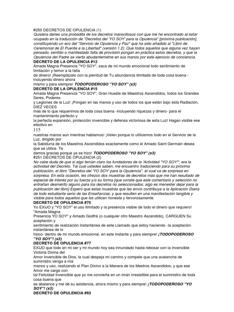 De nuestro poder como chispas divinas. (si aún no has experimentado alguno, tu vida se llenará de ellos). Los decretos de abundancia son muy poderosos, si los realizas de la manera adecuada. La palabra tiene poder, usemos el verbo correctamente y pongamos el universo a conspirar. Colección de georgina zambrano uribe • última actualización hace 6 semanas.